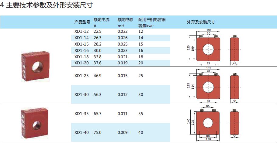 XD1型限流电抗器(也称阻尼电抗器)是采用不饱和树脂浇注成型的干式电抗器,适用于交流50Hz、额定电压0.4kV的交流电路中,用于低压无功功率成套装置中作为限制电容器组在交流网络上开关操作时产生的涌流和增加开关的开断能力。